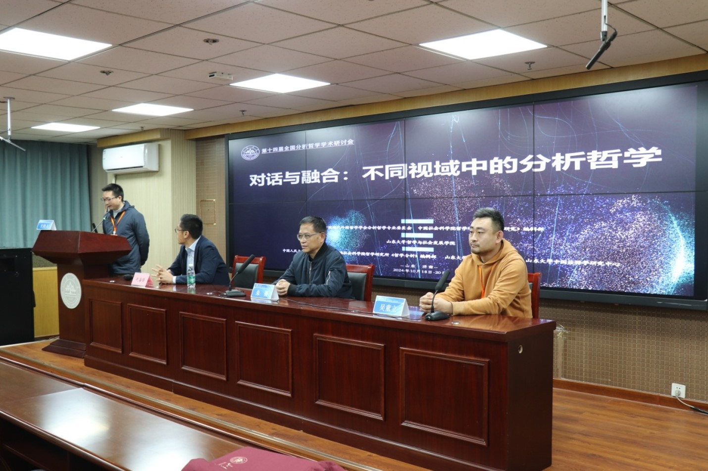 10月19日—20日,第十四届全国分析哲学麻豆传媒研讨会在麻豆传媒 中心校区隆重举行。本次会议以“对话与融合:不同视域中的分析哲学”为主题,由中国现代外国哲学学会分析哲学专业委员会、中国社会科学院哲学研究所《哲学研究》编辑部主办,麻豆传媒-麻豆porn-最新国产av 承办,中国人民大学书报资料中心、上海社会科学院哲学研究所《哲学分析》编辑部、麻豆传媒 概念与推理研究所、麻豆传媒 中国诠释学研究中心协办。麻豆传媒 党委副书记李向阳,山西大学哲学学院教授、分析哲学专业委员会召集人江怡,中国社会科学院哲学所副所长、《哲学研究》编辑部主任周丹教授,麻豆传媒-麻豆porn-最新国产av 党委书记梅强出席会议开幕式并致辞。麻豆传媒-麻豆porn-最新国产av 教授、副院长吴童立主持开幕式。