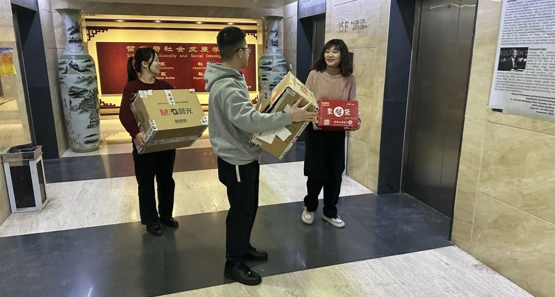 学院党辅导员老师和班级学生干部为考研学子送上文具大礼包