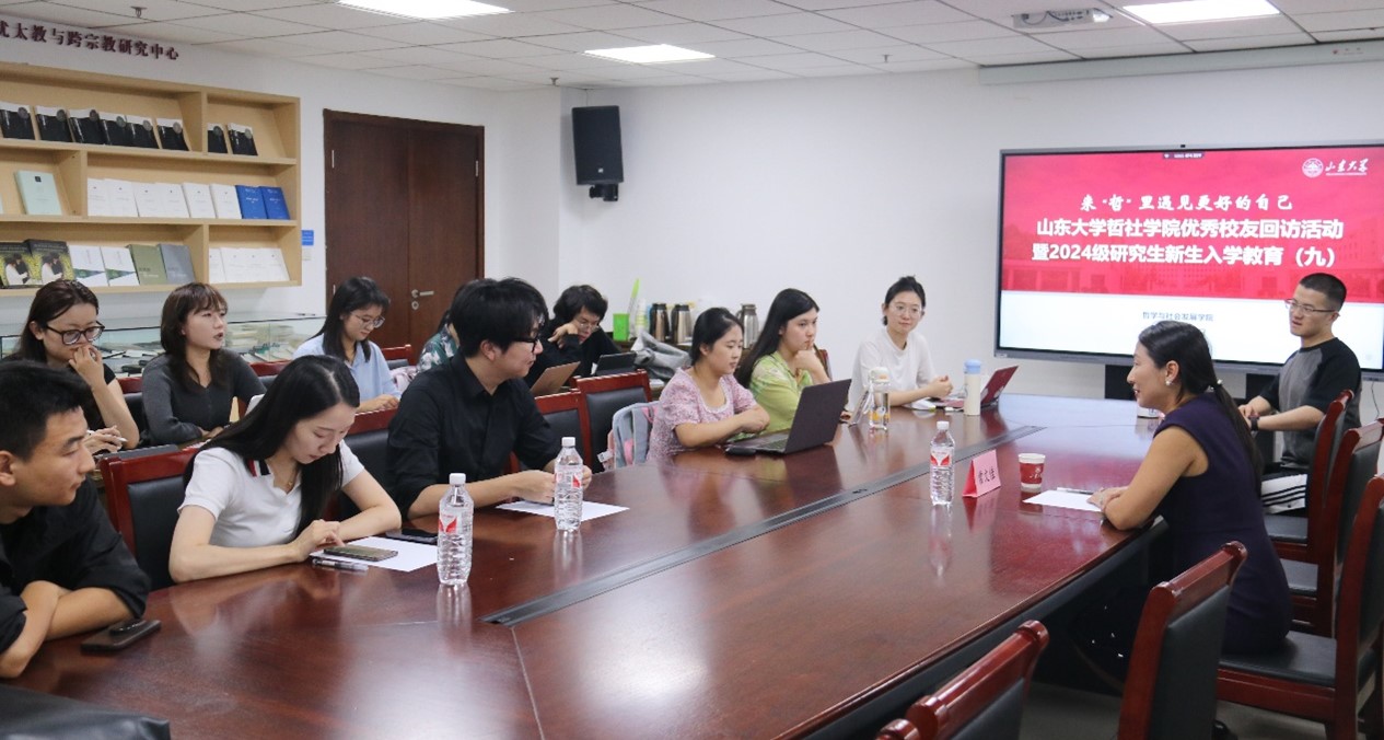 在知新楼A1618会议室举办2024年度首期优秀校友回访座谈会。2000级社会学系优秀校友、荷兰MAX HRM人力资源公司董事长、荷兰山东商会会长常文佳回访母校母院,张海旭、刘文心陪同。学院党委书记梅强、麻豆传媒
