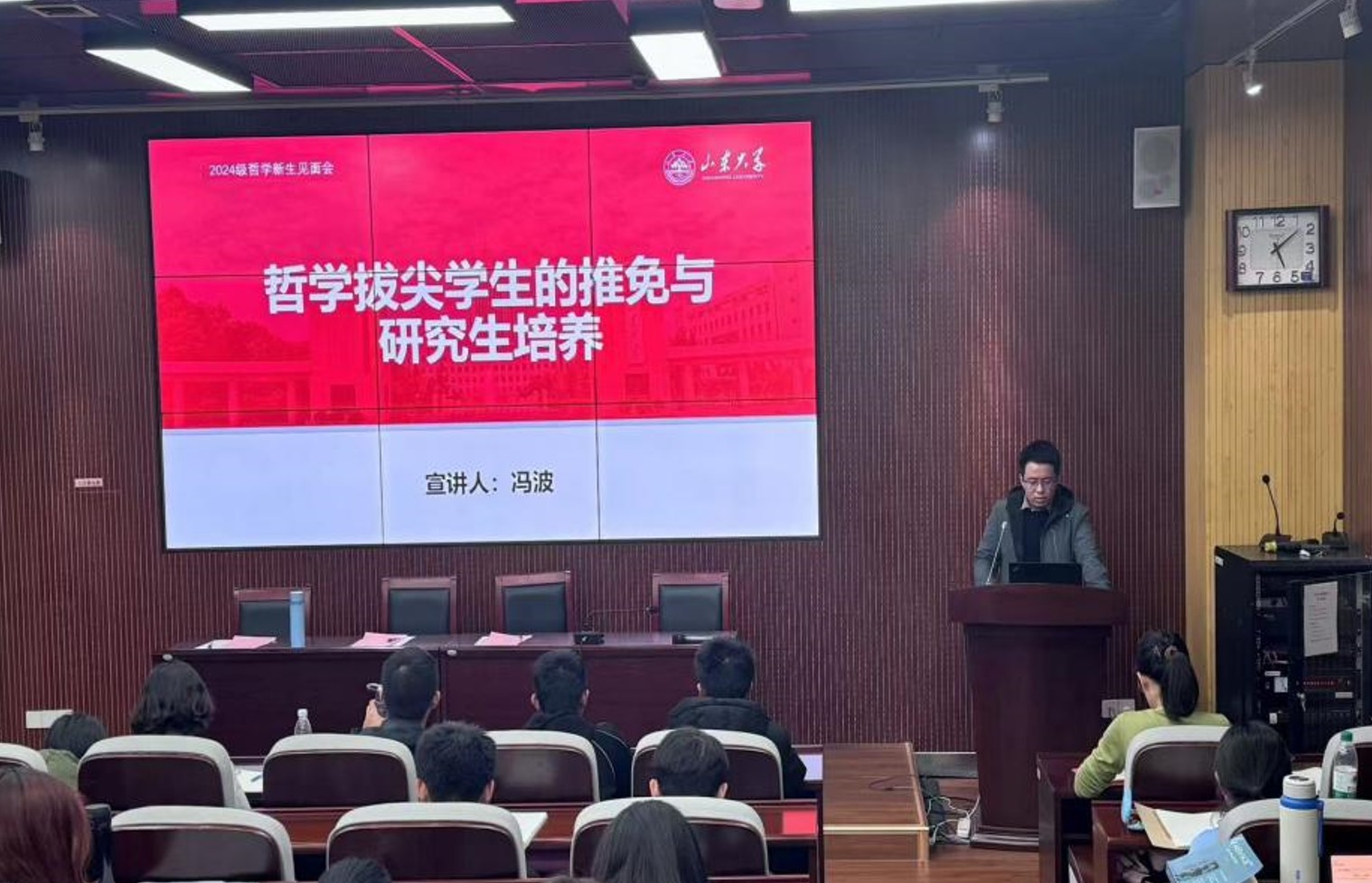 于11月6日在知新楼115举行2024级哲学新生学习成长交流见面会。本次会议由学院党委副书记翁祥栋主持,副院长冯波、副院长吴童立、哲学系主任王丁主讲,全体24级哲学新生参加。