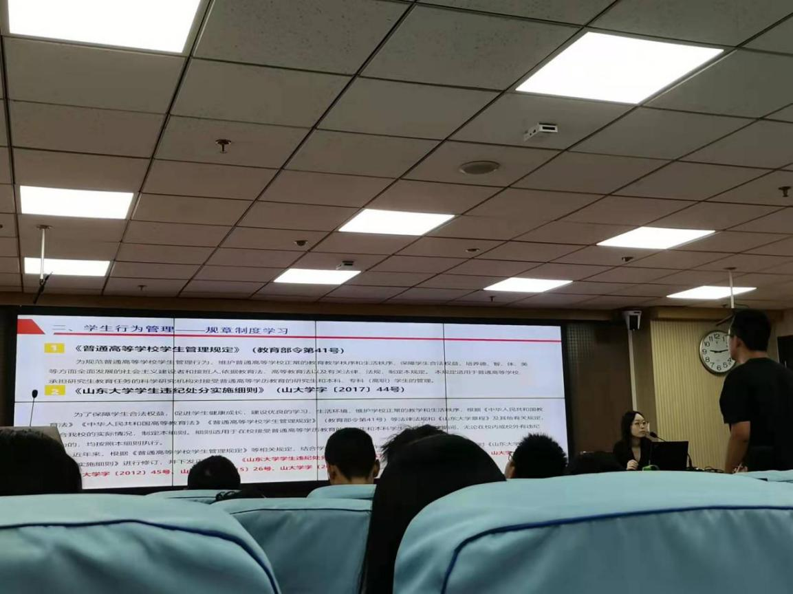 于知新楼A1521举办2021级新生荣誉体系培训讲座。会议由辅导员助理、2021级社会学专业硕士研究生史艺姝主持,全体2021级本科新生参加。