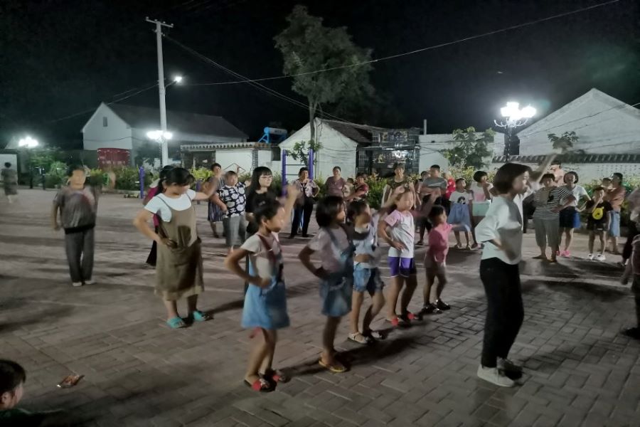 赴菏泽社会实践团队结合葵堌堆村人口的年龄性别结构和生活习惯,选择以广场舞的形式带动村民开展健身活动,一方面有助于村民强健体魄、提高身体素质、养成健康的生活习惯,另一方面为村民的日常娱乐活动提供新的形式、丰富村民的文化生活。